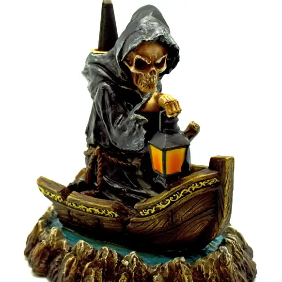 Reaper Lamp Back Flow Incense Burner 7 inches high and 6 inches wide Hand Painted Cold Cast Resin